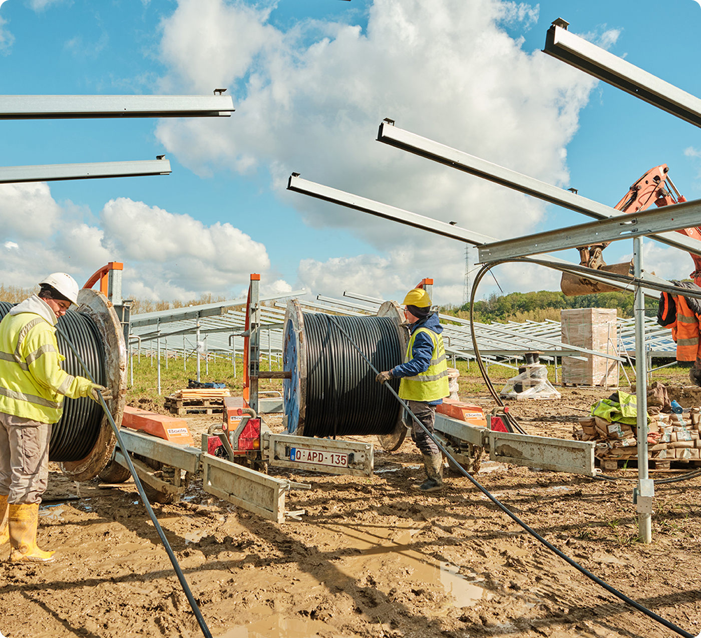 Nous réalisons le battage, le vissage, les longrines, le montage de structures et le raccordement PV sur les plus grands chantiers UE.